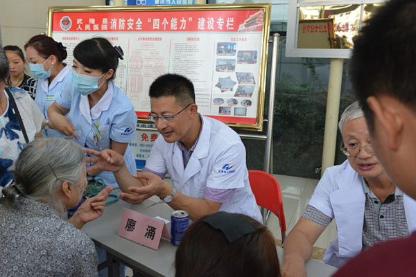由杨刚毅教授、陈兵教授、廖涌教授、闫振成教授在武隆县人民医院门诊设立了“重庆市医学会全国科普日活动”义诊会场,对百余人患者进行义诊,会诊现场被挤得水泄不通,大家纷纷表示,能在家门口享受到顶级专家的免费咨询、义诊非常高兴。